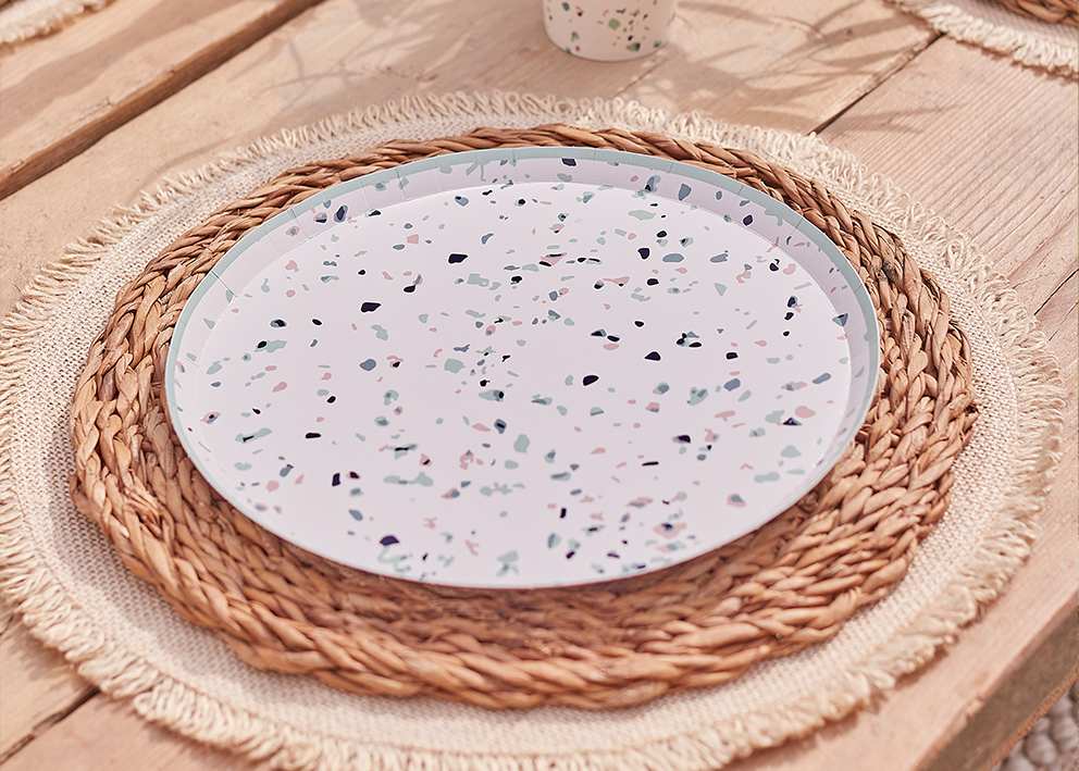 In unserem Onlineshop findest du zudem Unterlagen mit Prints für verschiedene Anlässe und Mottopartys. Deckchen in Form einer Schallplatte, als Fußball oder mit edlen Prints für Hochzeiten lassen keine Wünsche offen. Wer es eher schlicht und elegant mag, kann sich auch für unsere Platzsets in Silber oder Gold entscheiden. Mit ihrem außergewöhnlichen Gittermuster werten sie die Tischdekoration eurer Party garantiert auf. Neben Platzsets findest du bei uns zudem Platzkarten, mit denen du deinen Gästen einen Stuhl zuweisen kannst. In Form einer Kreidetafel sind sie auf jeder Veranstaltung ein besonderer Hingucker und können nicht nur zur Platzzuweisung, sondern auch für Menüs oder Grüße an die Gäste verwendet werden.