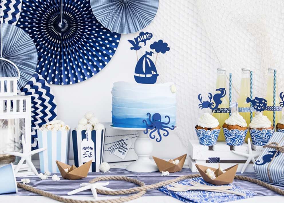 Im Konfetti-Alarm-Onlineshop findest du alles, was du für eine echte Party auf hoher See benötigst. Bei uns gibt es Partygeschirr im Seemanns-Stil und Tischläufer mit historischer Landkarte. Vasen verziert mit Schiffstau und Servietten mit Möwen-Print lassen deine Gäste im Handumdrehen denken, sie wären ein echter Matrose. Tischdecken, Girlanden und Luftballons kannst du in Farben wie Blau, Weiß und Rot halten. Wir bieten dir zudem eine große Auswahl an Kerzen in verschiedenen Farbtönen, Schleifenbändern und Dekosand, womit sich ein Tischschmuck für echte Seemänner zaubern lässt. Deine Raumdekoration kannst du außerdem durch Girlanden oder Luftballons mit maritimen Motiven wie Möwen, Schiffen, Ankern oder Schiffsrudern aufwerten. Im Konfetti-Alarm-Onlineshop findest du sicher alles, was du für deine Party zum Thema "Ahoi ahoi" brauchst.